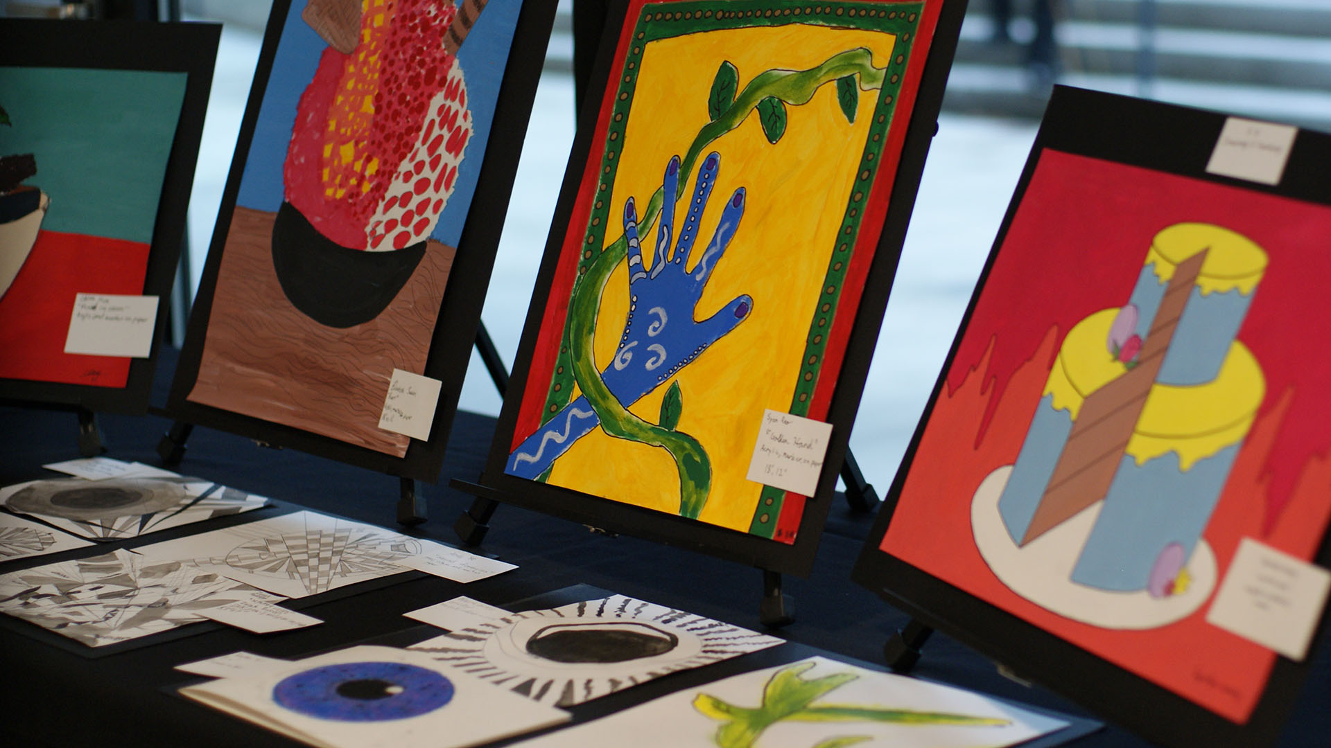 The broad selection of visual art courses at EPS embraces both 2D and 3D tools and experiences to reflect 21st century art making. Our media production studio includes professional cameras, a state-of-the-art green screen, portrait drops, professional lighting grid and state of the art film and music production software. Students have access to the complete Adobe Creative Cloud Suite, Protools, Abelton Live and FL Studio. Gallery and display cases throughout campus feature student work year-round.
