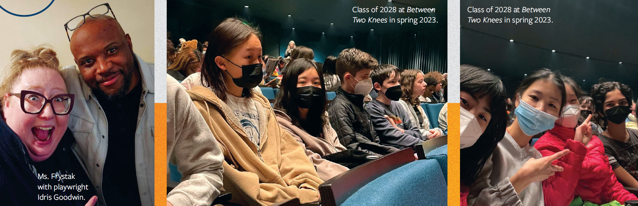 In the 2022-2023 school year, I chaperoned two outings to the Seattle Repertory Theatre. One moment that sticks out in my mind was during the seventh grade field trip to see Between Two Knees by the 1491s and directed by Eric Ting. As we entered the threshold of the theatre, Ryan Winkelmann, Middle School Social Science teacher, turned to me and declared, “Theatre is adult story time.” That sentiment resonated with me. We learn about others through their stories. Theatre is transactional insomuch as it distills a story down to its bare parts exposing emotions (sometimes uncomfortable ones) and engages the audience in a dialogue about a culture, a time, a fantasy, a tragedy, or a forgotten history. Oral tradition is as old as human nature.