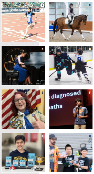 C. Kate (’28) earned first place in the Music Matters Foundation and BAMA (Bay Area Music Association) international piano competitions. She received an ARCT (Associate Diploma of the Royal Conservatory of Music) Certificate in Piano Performance and has performed at Benaroya Hall.