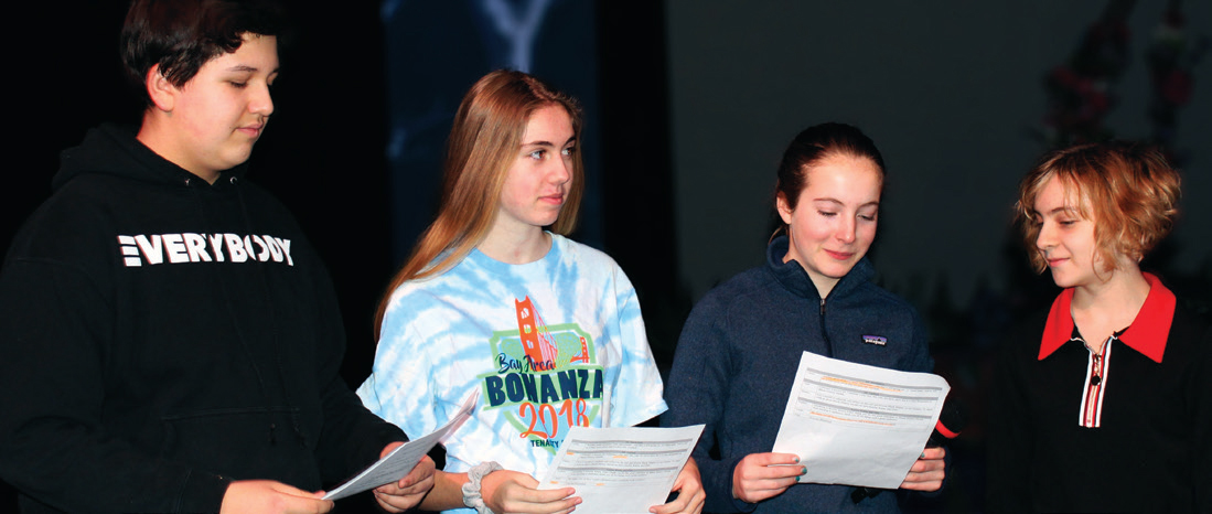 A THIRTEEN-YEAR-OLD STANDS WITH A MICROPHONE on the stage of the TALI Theatre, looking confident as she prepares to address the entire Middle School. When she speaks, the crowd goes silent, listening to her warm welcome to the day’s assembly. Many adults shudder at the thought of speaking publicly, but this eighth grader has the confidence and skills to hold the attention of her peers—and she’s only one of many students taking the opportunity to shine in assemblies this year. Like her peers, she is learning and practicing intentional leadership through our eighth-grade program, the Leadership Lab.