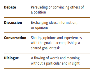 What is dialogue? It’s one of four different forms of discourse. You may be more familiar with other forms of discourse or use them more often, such as “debate” or “conversation.”