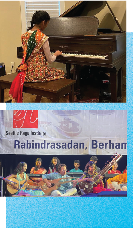 In 2022, Anika was chosen to play piano with the Seattle Raga Institute tour group, joining adults and children performing in venues throughout India, including the Kolkata region. For some performances, Anika represented SRI along with the Poetry on Drums group, accompanying traditional Indian kathak dance groups in performances.