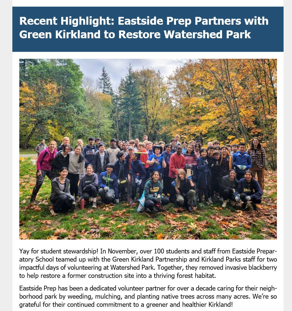 Student Highlight: Service at Watershed Park